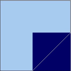 Four inch finished size - Cut four 2 1/2" squares (2 light, 2 dark). Cut two 1 1/2" squares dark.