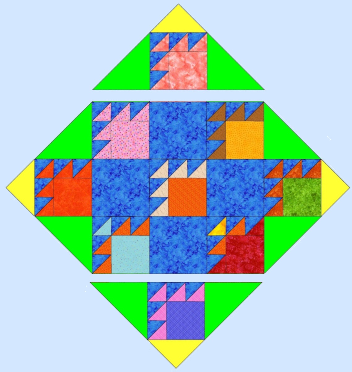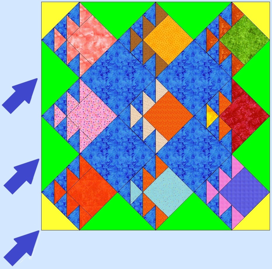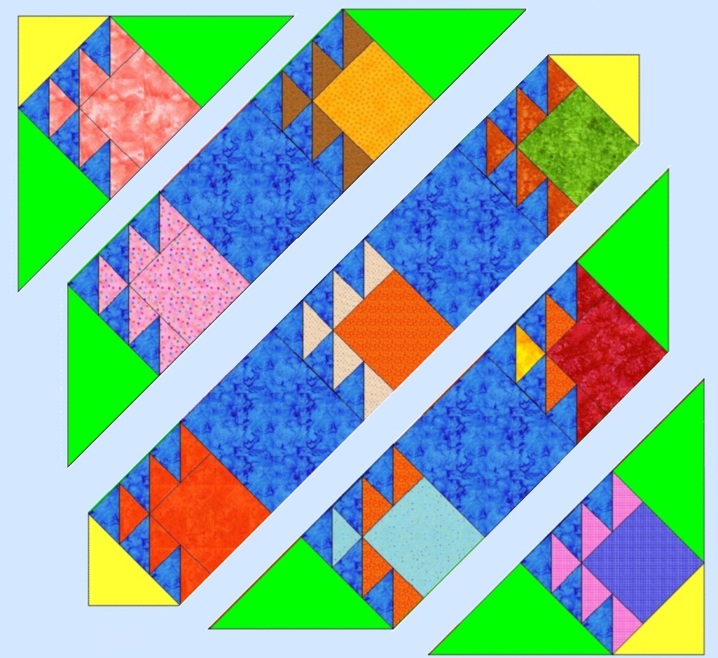 On this quilt you can see the side triangles, or setting triangles, are in green.