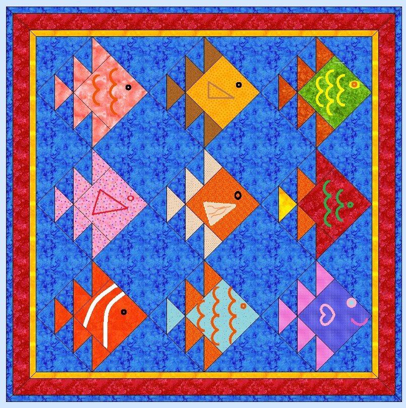 Some quilts just look best set on the diagonal. Some blocks, like these fishy blocks, really look silly set straight, or all swimming down stream. (Maybe one, but not the whole bunch!) But it's not that hard to set a quilt on the diagonal, so don't panic.
