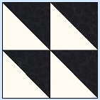 First, mark your white-on-white squares diagonally through the center. (This will be a cutting line when you are finished.) Place a red 3 3/8 inch square, right sides together with the 3 3/8 inch marked white-on-white square. Sew on either side of the drawn line, exactly 1/4 inch from the first line. Cut this square in half on the cutting line. Press to the darkest fabric, in this case red. You will now have two diagonal half-squares, which should measure exactly 3 inches. Repeat with the remaining 3 3/8 inch squares. Press these all the same, to the darkest fabric and away from the white-on-white.