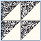 Now sew a white-on-white strip between a black unit and a print unit. Notice the direction the DHSs are pointing.