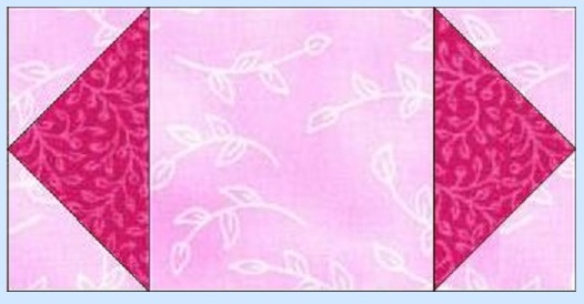 For your flying geese cut four 6 1/2 by 3 1/2 (bright pink)