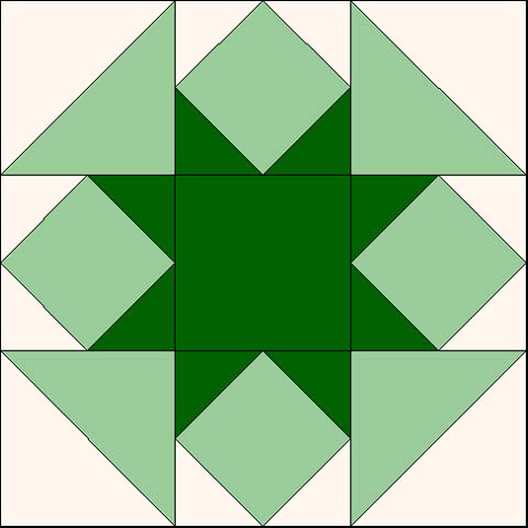 I have to be honest, I was calling this block Hidden Stars. I was checking Block Base to see if it had any other names, and that name wasn't even in there. It fit, but I don't know where I got that name from. So I looked for the block under a different name and came up with four names, Sawtooth, Another Sawtooth, Saw Tooth Patchwork and Mrs. Brown's Choice. Since I don't think it looks like a sawtooth star, I'm calling this Mrs. Brown's Choice.