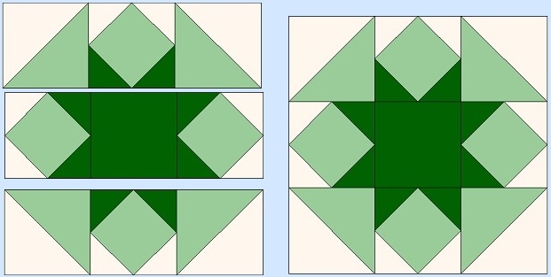 Put the three rows together as shown above to complete the Mrs. Brown's Choice block. Your finished block should measure 12 1/2 inches.
