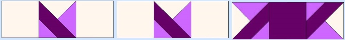 Take a background triangle and a light color triangle, and sew them together. Sew this unit to the dark triangle unit. This unit should also measure 4 1/2 inches. |