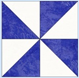 The basic Pinwheel block is simply four diagonal half squares (a.k.a. triangle squares or half square triangles) put together in a four patch block. The Simplicity block is a four patch made of four pinwheels.