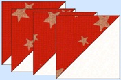 First we'll make the red and white diagonal half squares. Carefully draw a line corner to corner, (diagonally) through the white or lightest 3 7/8 inch squares. This will be a cutting line when you are finished. Place red and white 3 7/8 inch square right sides together. If you have a true 1/4 inch foot on your machine, you can sew on either side of the drawn line. If not, you will have to draw a second line on either side, exactly 1/4 inch from the first line. Those will be your sewing lines. After you have sewn on the sewing lines (1/4 inch on either side of your corner to corner to line) you will cut this square in half on the drawn cutting line. Clip off the corners as shown. You will now have two diagonal half squares, which should measure exactly 3 1/2 inches.