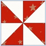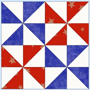 Then make those into two red and two blue pinwheel blocks. Each little pinwheel block should measure 6 1/2 inches.
