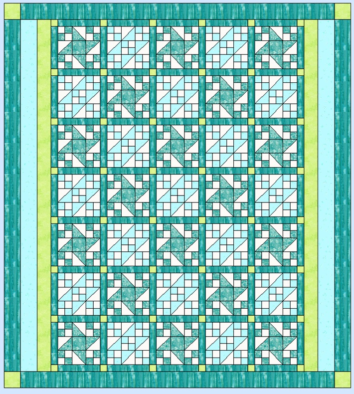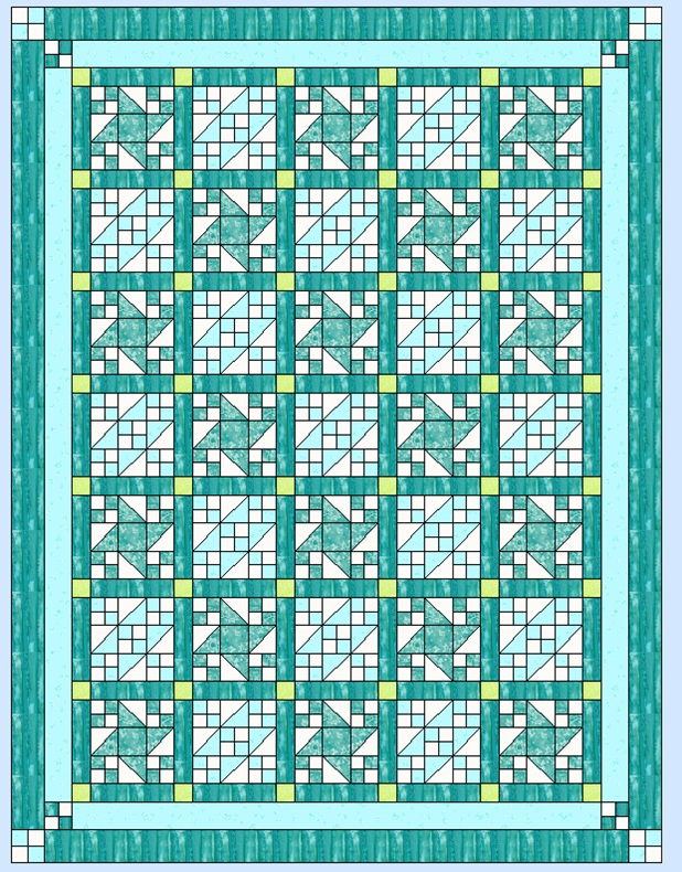 Here are diagrams of the quilt before and after borders. With the borders added, this quilt would cover the top of the mattress and the borders would drape