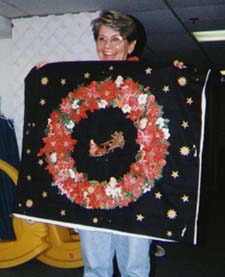 ![]() Ellie's class was all hand work, 3D Applique Flowers. The ladies made a variety of three dimensional flowers.
