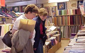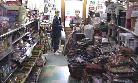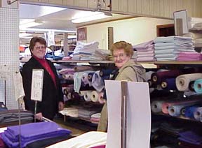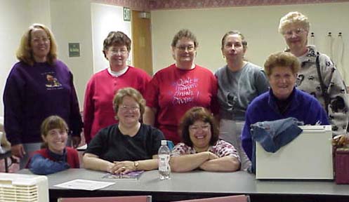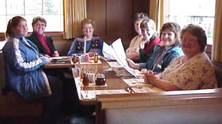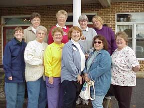 Friday morning was our Quilters Dream Shopping Excursion, and the ladies were up and ready to go bright and early. Here we are ready to start off.. Front row, left to right, Anne, Fran, Deloris, Rita, Mariann and Candy. Back row, Nancy, Dottie, Bonnie and Debbie. |