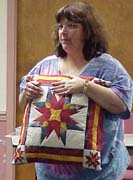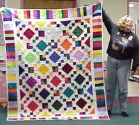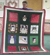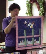 ![]() Mariann show us her project from a Carol Doak class she took. Bonnie shows off her flamingo yellow brick road. Candy told us how her bargello quilt grew, and grew... and Lynne showed off her snowman quilt from the guild Snowman Swap.